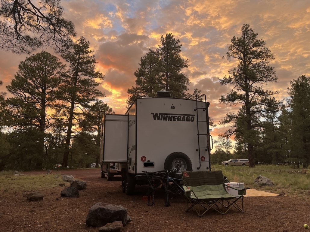 Summer 2024 we spent a week deep in the forest of northern Arizona. It was a more chill vacation than I’m used to but it was absolutely fabulous. We stopped in Flagstaff for two nights on the way north to break up the drive. It just so happens that it was really hot the week we were on vacation so we left our air conditioned house to camp in the heat with no A/C. Cool. We stayed at Canyon Vista Campground just outside of Flagstaff.