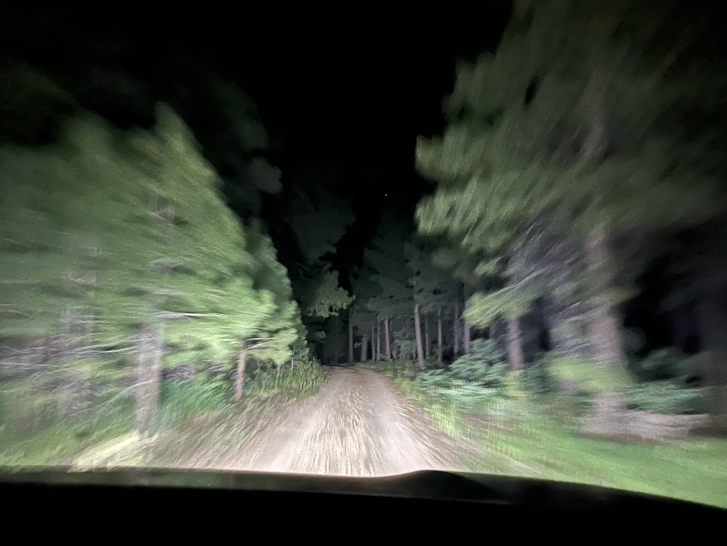 Driving out of the forest in the middle of the night